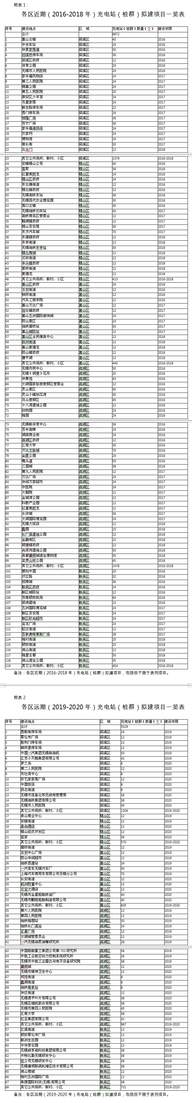 结合充电站(桩群)的功能布局,对梁溪区、锡山区、惠山区、滨湖区、新吴区等5个行政区充电站(桩群)布点(见附表)如下: