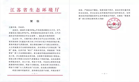 省生态环境厅向澳门新葡京博彩平台委、市政府发来贺信,