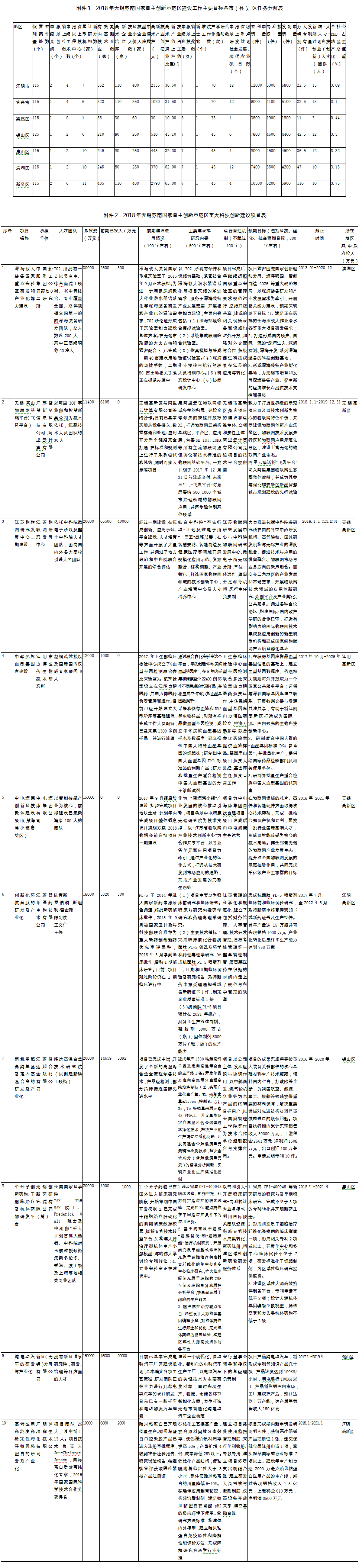 2.2018年无锡苏南国家自主创新示范区重大科技创新建设项目表