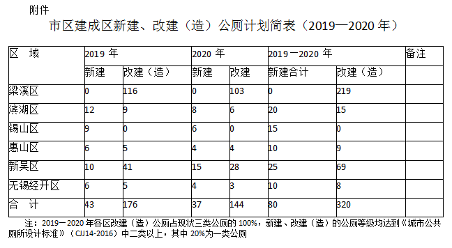 附件:市区建成区新建、改建(造)公厕计划简表(2019—2020年)