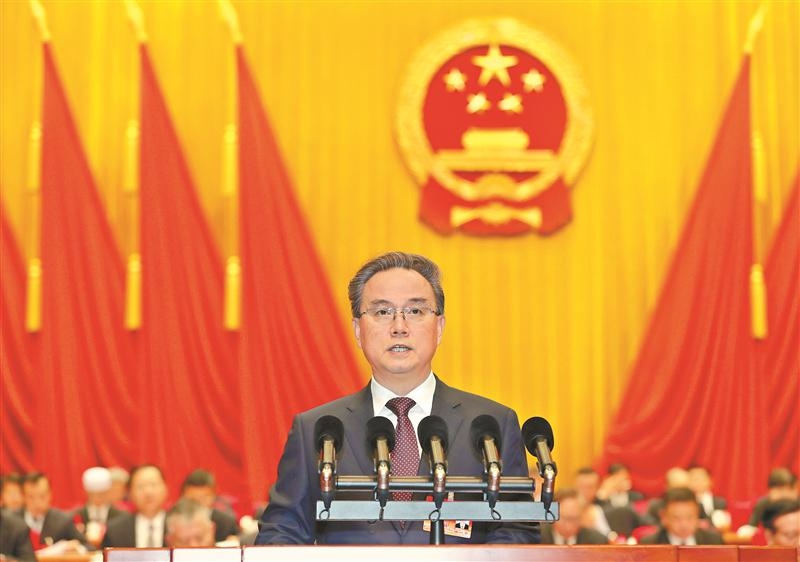 1月9日下午,澳门新葡京博彩官网十六届人大四次会议第二次大会在市人民大会堂举行。市人大常委会主任徐一平作市人大常委会工作报告。(吕枫 宦玮 摄)
