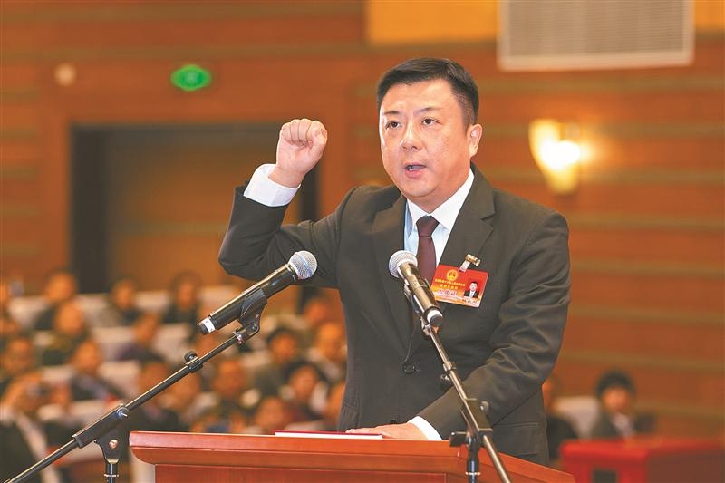 1月11日,新当选的澳门新葡京博彩官网市长杜小刚向宪法宣誓。(石觉 摄)