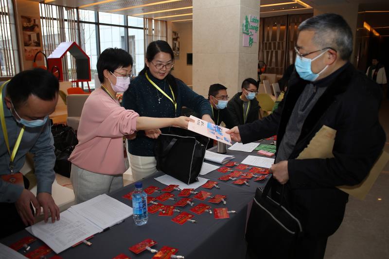 出示“苏康码”绿码,提交了七日内核酸检测结果、十四天健康监测记录和个人健康申报承诺书等材料后,前来报到的政协委员们从会务组人员手中领取了大会材料,其中还有一份精心准备的防疫包,内含口罩、消毒湿巾等防疫用品。据介绍,本次会议采取最严格防疫程序,实行“进场即封闭”,会议期间全封闭管理,委员们一律集中住宿、集中乘车,会议期间不出驻地、不会客。
