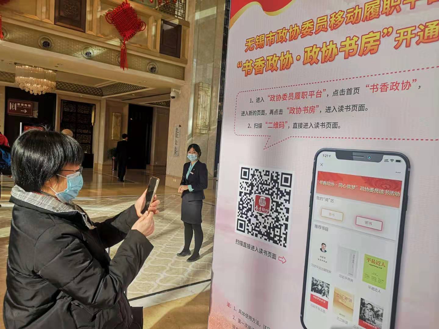 完成报到手续后,市政协委员薛鸥转身用手机扫了扫会场海报上的二维码,即刻进入“政协书房”。今年,市政协与市图书馆合作,在委员移动履职平台开设“书香政协”板块,下设“政协书房”已建成开通。全封闭管理会议期间,委员履职之余可在“政协书房”随时随地免费看书、听书,读书履职相促进。