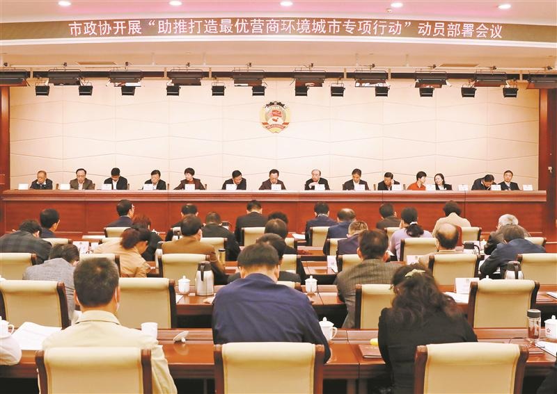 助推营商环境建设。图为市政协召开开展“助推打造最优营商环境城市专项行动”动员部署会议。