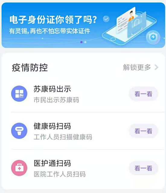 统一身份、统一认证、统一入口,灵锡依托公安部和大数据管理局,推行应用全市居民电子身份凭证和网证码,最近上线的灵锡乘车地铁码,可以实现先乘后付,无接触扫码,真正做到一机在手走遍无锡,一码通行畅通无阻。