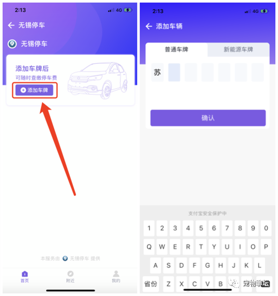第二步:点击【添加车牌】,输入您的车牌号码绑定(最多可以添加3个车牌号码);