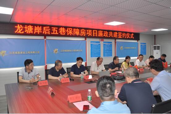 为进一步增强建设领域廉洁从业意识,筑牢拒腐防变思想防线,6月29日下午,市住保办在龙塘岸后五巷保障房项目现场举行廉政共建签约仪式,邀请市住建局副局长孙晓鹏、一级调研员朱秋荣及市城建发展集团纪委张萍书记、张琦海副总裁等领导参会。