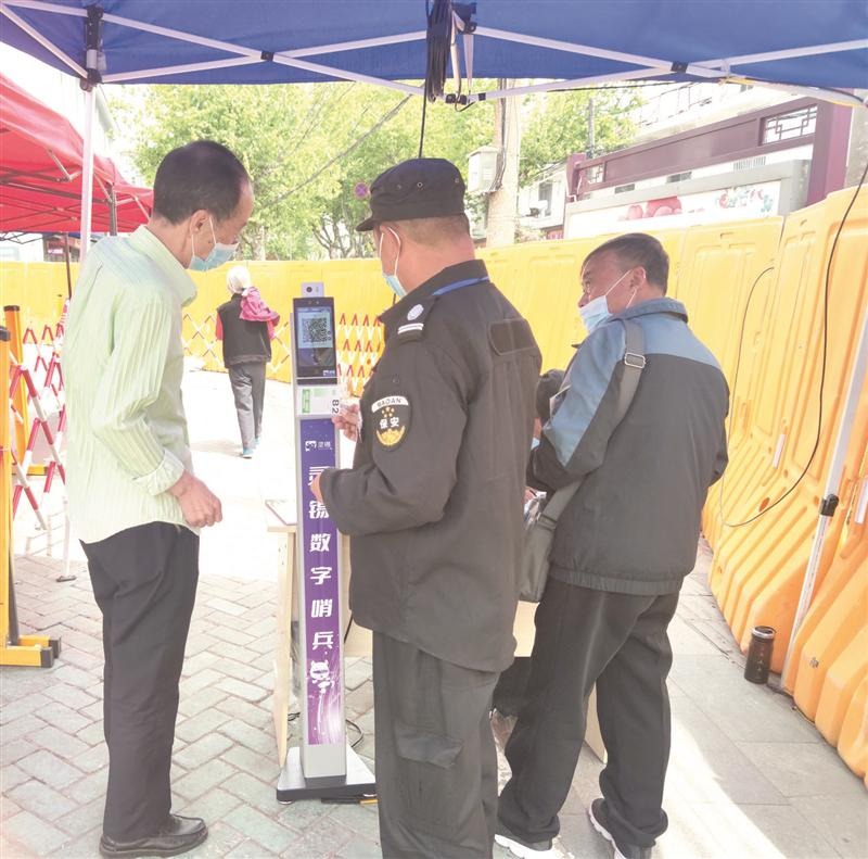 4月22日上午,“灵锡数字哨兵”在朝阳农贸市场门口试点上线。记者在现场看到,通过新安装的“数字哨兵”,没有智能手机的市民出入只需要拿着身份证或者个人门铃码对着信息屏“扫一扫”,三到五秒钟即可完成查验通行。