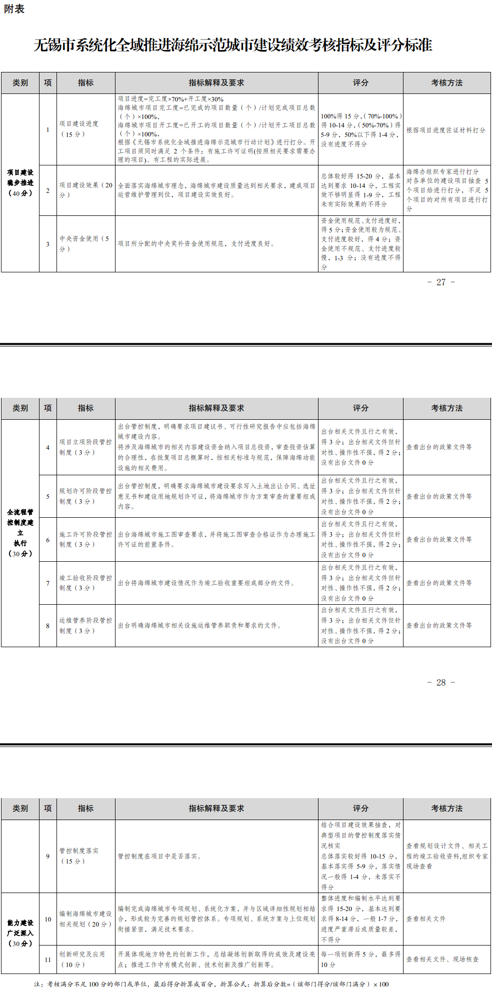 附表:澳门新葡京博彩平台系统化全域推进海绵示范城市建设绩效考核指标及评分标准