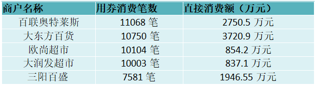 “乐享新春”百货零售类商户用券排行榜