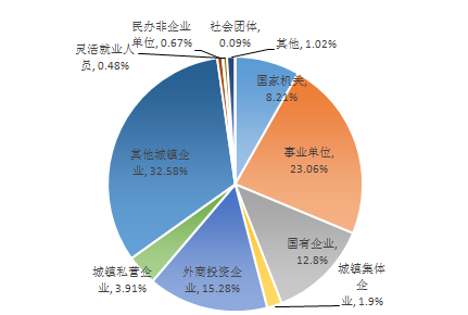 2023年一季度实缴职工数按不同性质单位分类占比图