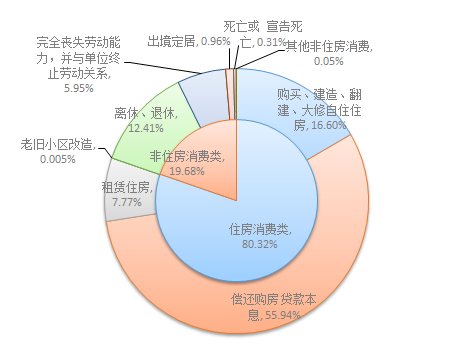 2023年一季度,住房消费类提取金额为48.4亿元,环比增长5.29%,占四季度提取额的80.32%。其中,购房购买、建造、翻建、大修自住住房和还贷提取占重要位置,提取金额分别10亿元、33.71亿元,占四季度提取额的16.6%、55.94%。具体提取结构如下: