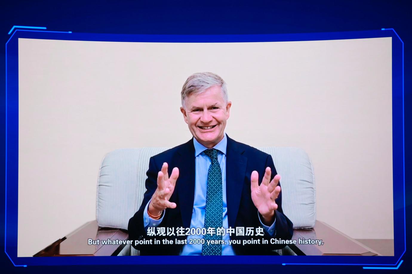 9月9日,由中央广播电视总台和江苏省人民政府联合主办的2023年中国国际智能传播论坛开幕式暨主论坛在江苏无锡举行。来自全球智能科技与传播行业的学界、业界和商界精英汇聚一堂,集智共商、交流分享,共话智能时代新机遇,共谱智能传播发展新篇章。联合国前副秘书长、欧盟-亚洲中心主席埃里克·索尔海姆通过视频发表致辞。