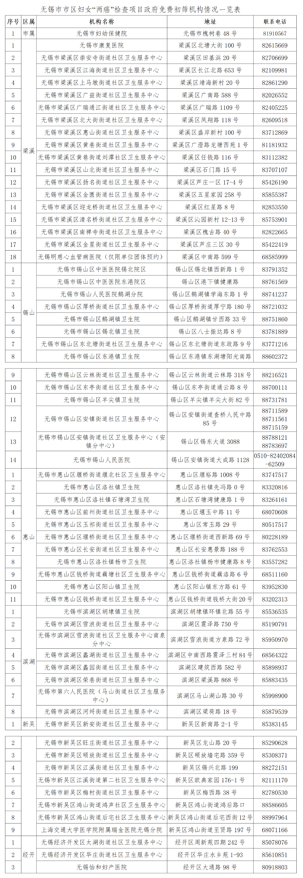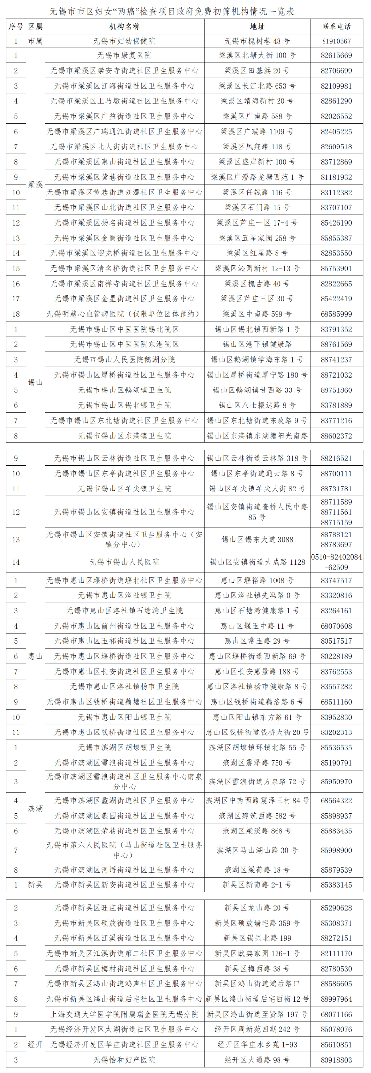 澳门新葡京博彩官网市区妇女“两癌”检查项目政府免费初筛机构情况一览表