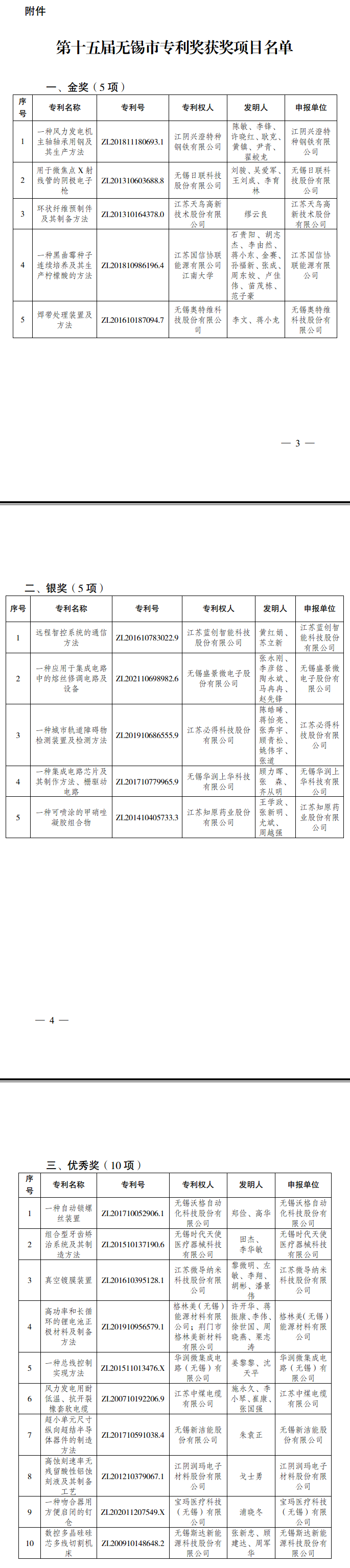 附件:第十五届澳门新葡京博彩平台专利奖获奖项目名单