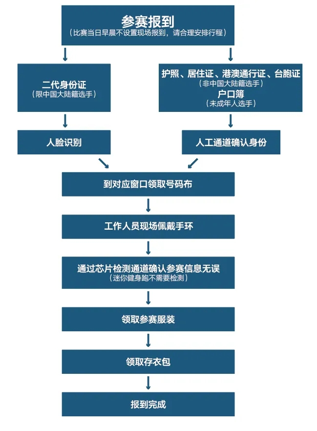 1. 参赛物品须选手本人领取,不得代领任何物品,报到现场将通过人脸识别技术对选手身份进行逐一核验。请报到前务必携带本人有效身份证件原件,人、证不一致将无法领取参赛物品;