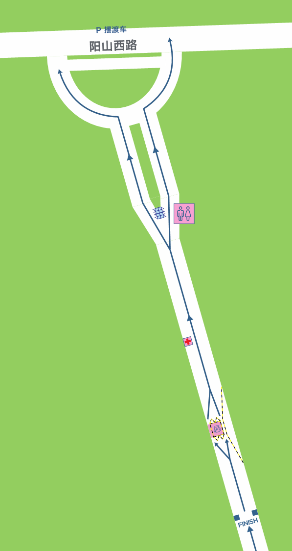 注意:如果您在比赛途中已经被关门,请乘坐收容车回到起终点,以免错过赛后的返程摆渡车。