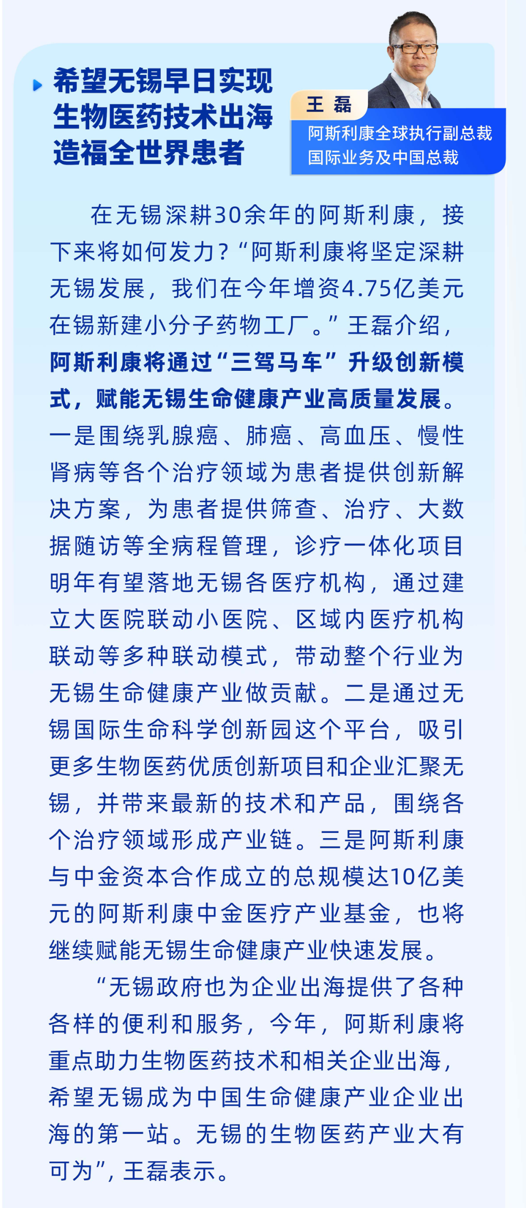 王磊 阿斯利康全球执行副总裁国际业务及中国总裁