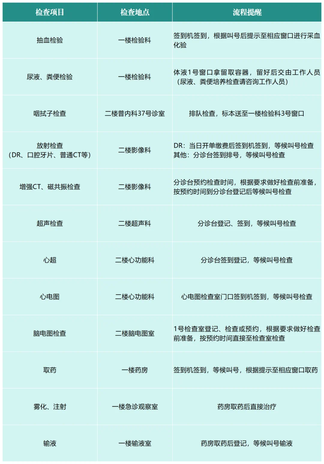 3、结束就诊后,按照医生的诊疗意见进行下一步骤:缴费后完成相关检验检查、治疗、药房取药等。