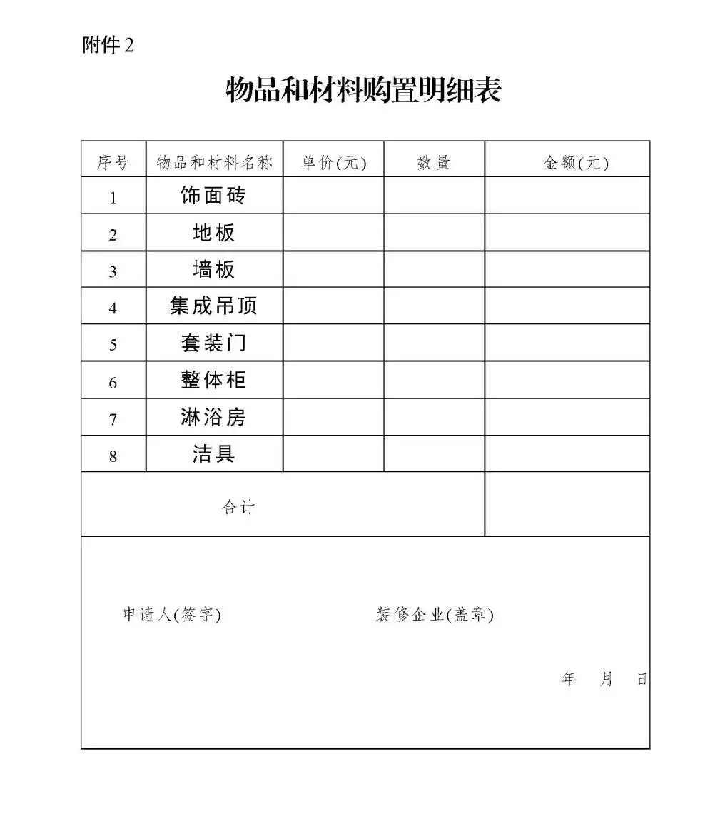 2024年7月25日(含)至2024年12月31日(含)期间签订住宅装修协议,由装修公司代为购置用于旧房(包括城镇住宅和农村住宅)装修、厨卫等局部改造所需的物品和材料,包括饰面砖、地板、墙板、集成吊顶、套装门、整体柜、淋浴房、洁具。