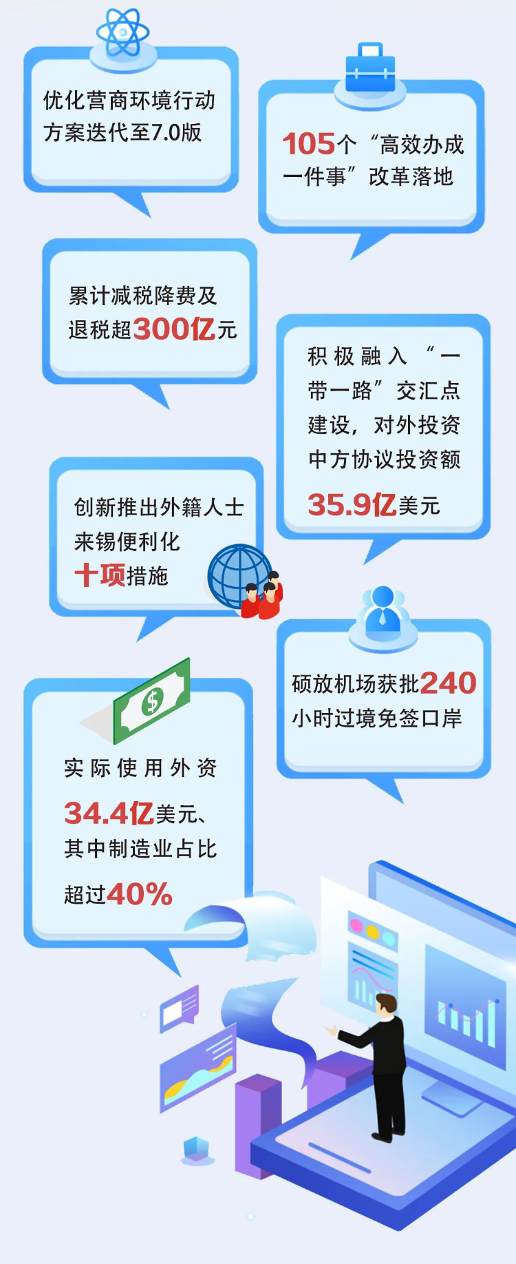 2024年,无锡,“优”潮涌动!营商环境优化助力企业腾飞,优化营商环境行动方案7.0版、“高效办成一件事”、减税降费、外籍人士来锡便利化十项措施……无锡通过简化审批流程、优化政务服务,切实为企业减负增效,真正做到企有所呼、政必有应,营造政策透明、服务高效、市场开放的环境,使企业家们“游刃有余”,充分激发创新活力与商业潜能。