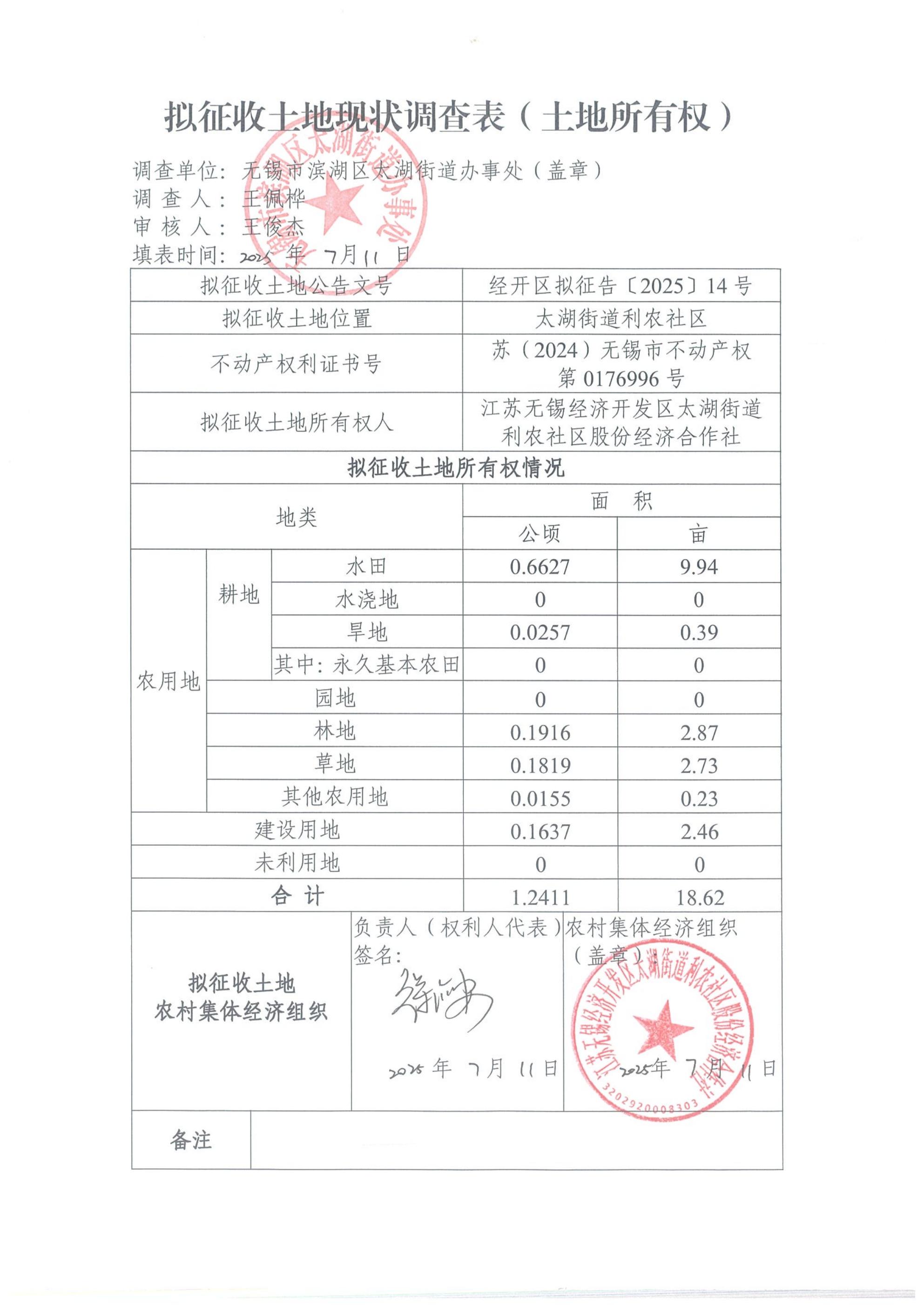 经开区拟征告〔2025〕14号确认-新东古巷浜及周边水系综合整治工程项目-太湖街道利农社区股份经济合作社