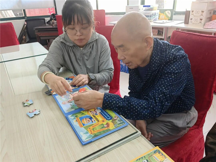 社会组织的积极参与,更让照护服务触手可及。“千忆千寻”项目由复群社工事务所运营,依托新安街道乐龄居家养老服务中心二楼的全市首个“长者认知障碍支持中心”,为认知障碍老人及其家庭提供全方位专业支持。走进中心,舒适的桌椅、丰富的书柜、多样的认知玩具,处处彰显着人文关怀。