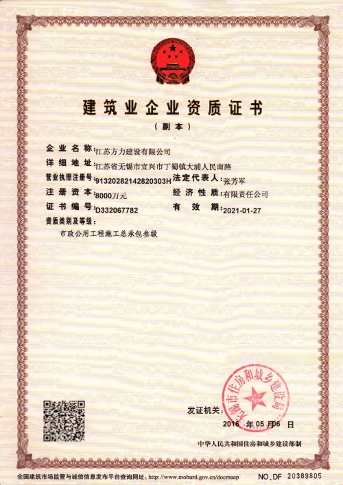建筑业企业资质证书(副本)