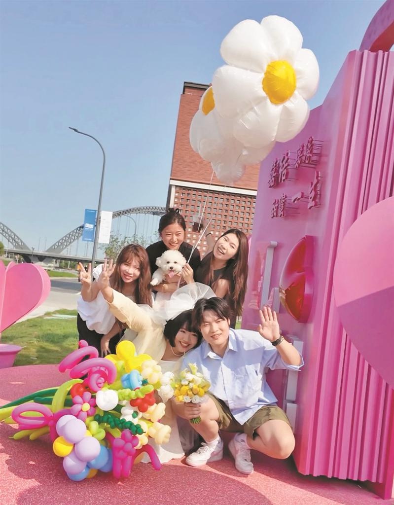 这一婚姻登记点位的启用,也标志着梁溪首个以婚嫁人文为主题的轻文旅微度假项目——“南尖·慢谷”正式开启。“南尖·慢谷”位于古运河与京杭大运河交汇的河尖区域,占地约9.7万平方米,绿化覆盖率达65%。项目以“婚礼艺术中心+文化街区+新商业”为核心模式,构建多层次婚庆消费场景。据项目负责人介绍,未来园区将围绕“锡生活”“爱”“艺术”三大主题,推出常态化活动,5月下旬公园内还将举办婚嫁主题的“幸福体验季”,联合知名品牌打造沉浸式婚礼秀。