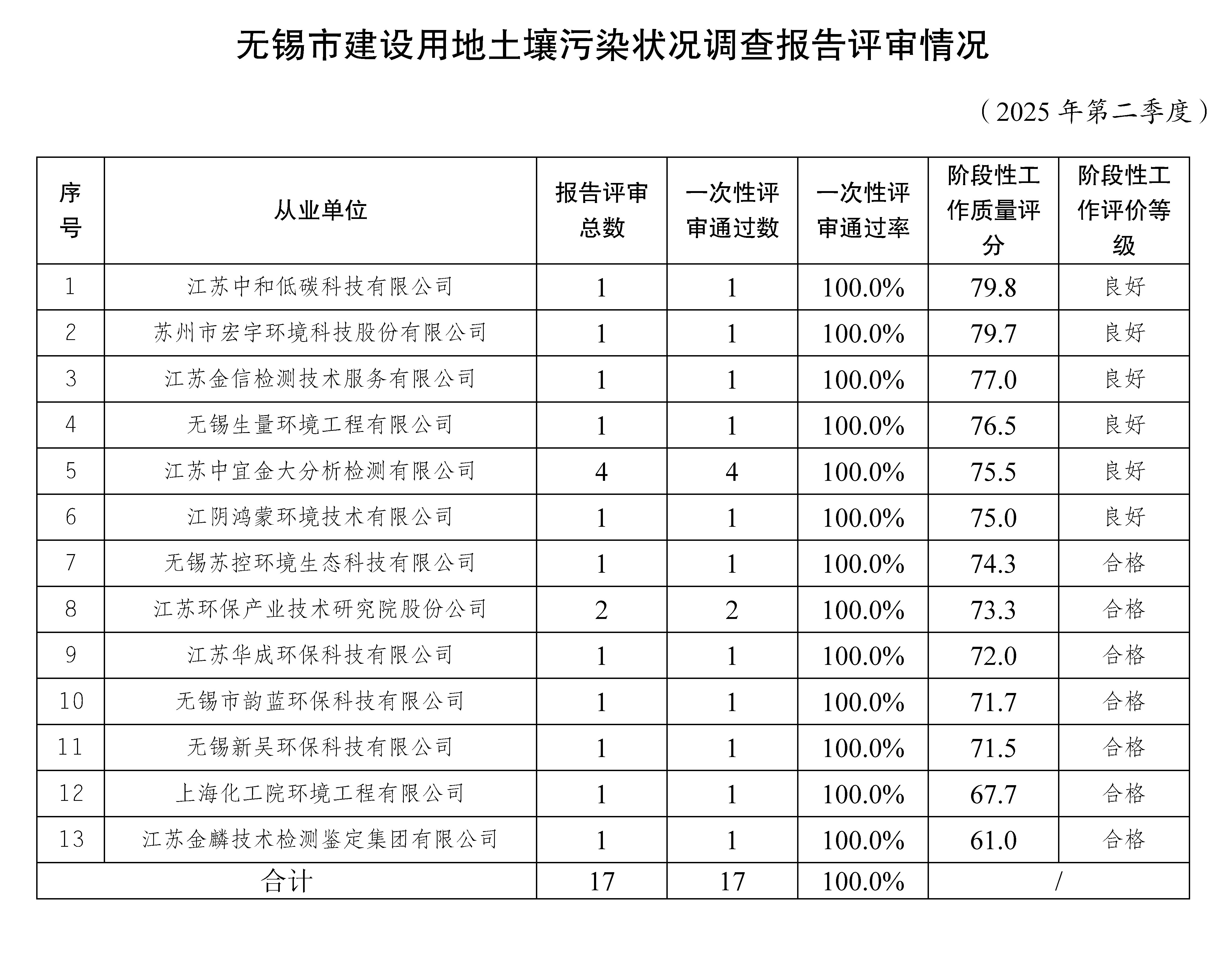 根据《澳门新葡京博彩平台建设用地土壤污染状况调查从业单位工作质量评价办法(试行)》,我局对全市2025年第二季度建设用地土壤污染状况调查报告评审情况进行了汇总,相关情况公示如下: