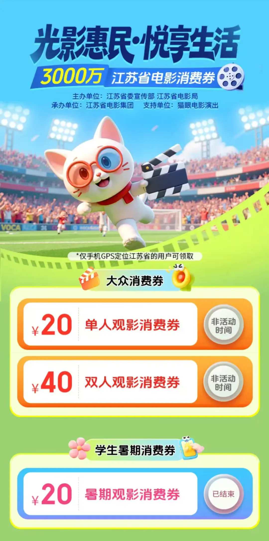 消费券面额: 单人观影券:20元(订单金额满20元可用)。