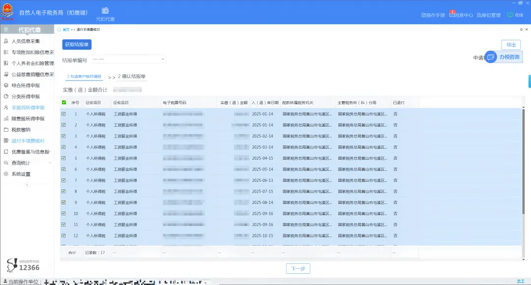 自2026年1月1日至3月31日,扣缴单位财务人员可通过自然人电子税务局(扣缴端)“退付手续费核对”模块申请办理2025年度个人所得税扣缴手续费退付。